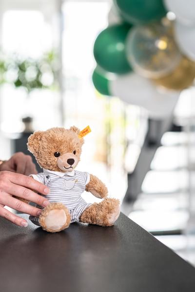 The adorable Sleep Well Bear is a must-have companion for babies from their very first day. Soft, cuddly, and full of comfort, this lovable bear quickly becomes an indispensable friend — soothing little ones to sleep and accompanying them through early childhood. Dressed in removable, beautifully crafted clothing, Sleep Well Bear makes a perfect gift for newborns and a cherished keepsake for years to come.