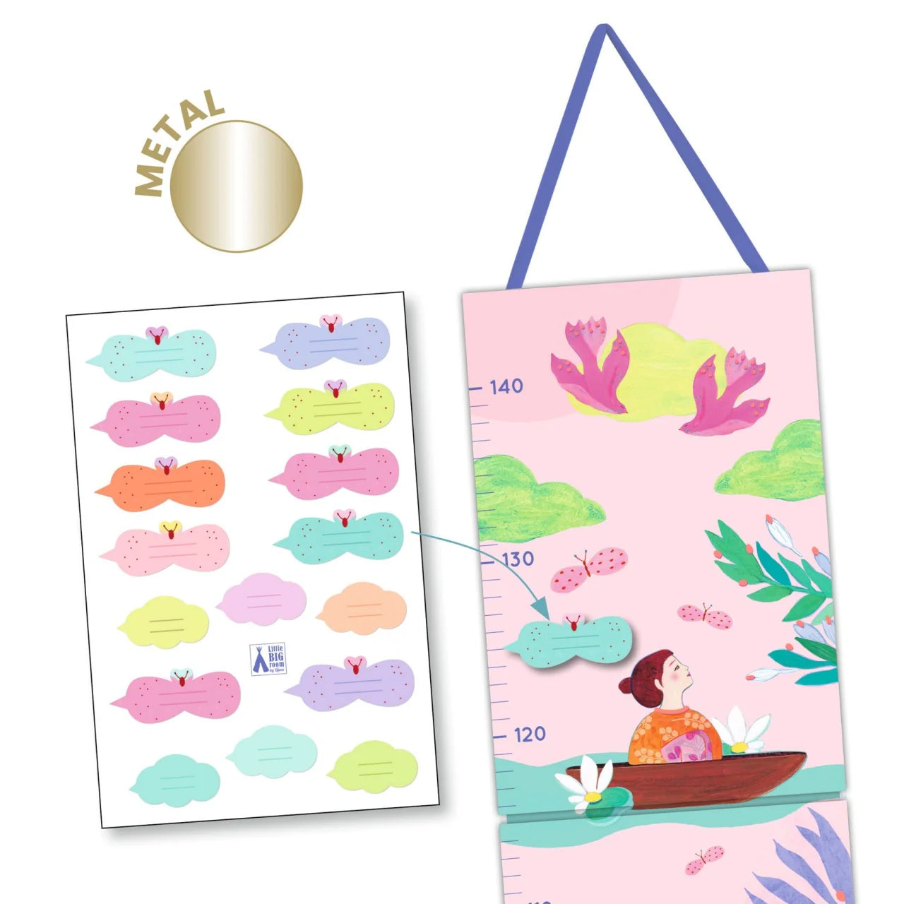 A large themed wall growth chart with plenty of reusable stickers, designed to decorate a child’s room while measuring their height as they grow (up to 1.4 m). Both decorative and practical, it becomes a lovely keepsake to treasure later, neatly stored in its beautiful presentation box.