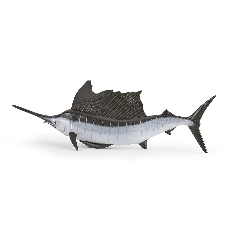 This Papo figurine faithfully recreates the sailfish: streamlined body, imposing sail and slender rostrum. An ideal model to enrich a collection of marine animals, invent stories full of speed and hunting, or to educate children about the incredible adaptations of ocean fish.