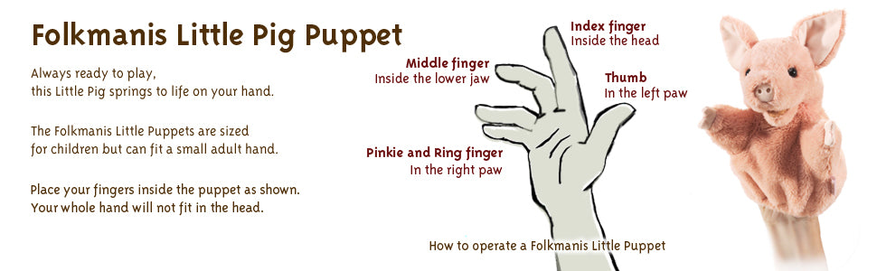 Bring barnyard charm and playful snorts to life with the Folkmanis® Little Pig Puppet. Crafted from ultra-soft pink plush, this little pig is delightfully cuddly, yet perfectly designed for imaginative storytelling. Slide your hand inside and animate its movable mouth and front legs, allowing the pig to oink, gesticulate, or “sing” any farmyard tale you create.