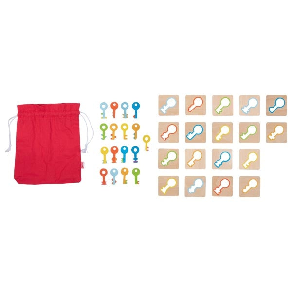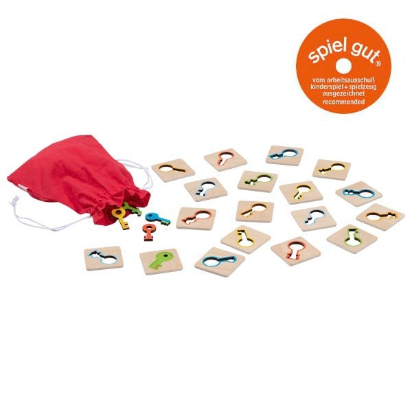 The Memo Game – Key Search is a classic memory-matching game designed to sharpen concentration and visual recognition skills. Players flip cards to find matching pairs of keys, enhancing memory, attention, and cognitive development while having fun. Crafted from sustainably sourced European wood and finished with water-based paints, this durable game combines learning and play in a high-quality, eco-friendly package.