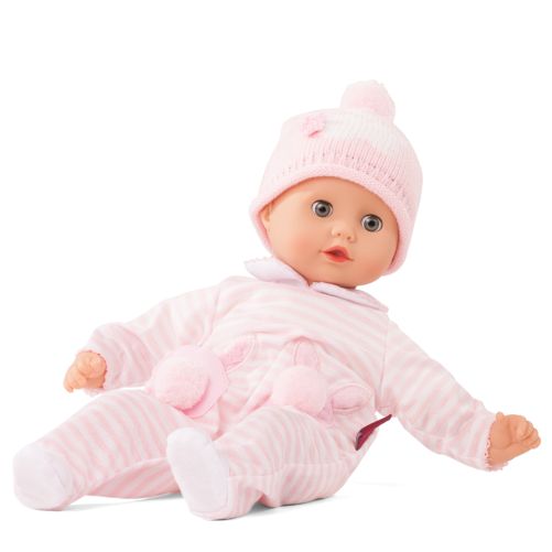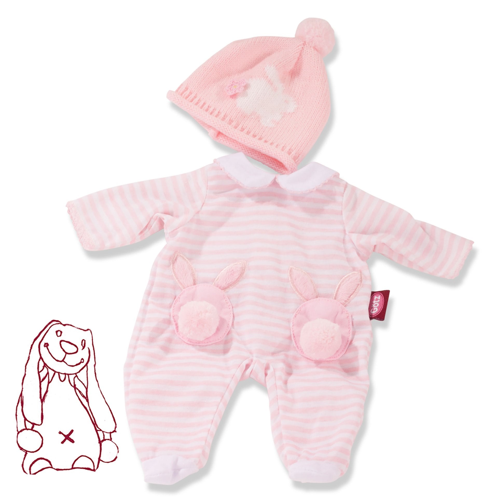 This will be your little baby dolls' favourite romper. A stripy onesie with little bunnies on the tummy. Even when they think they only show us their backs we can see their cuddly faces and soft plush ears. Adorable! You can find another rabbit on the knitted bobble hat. What a nice combo!