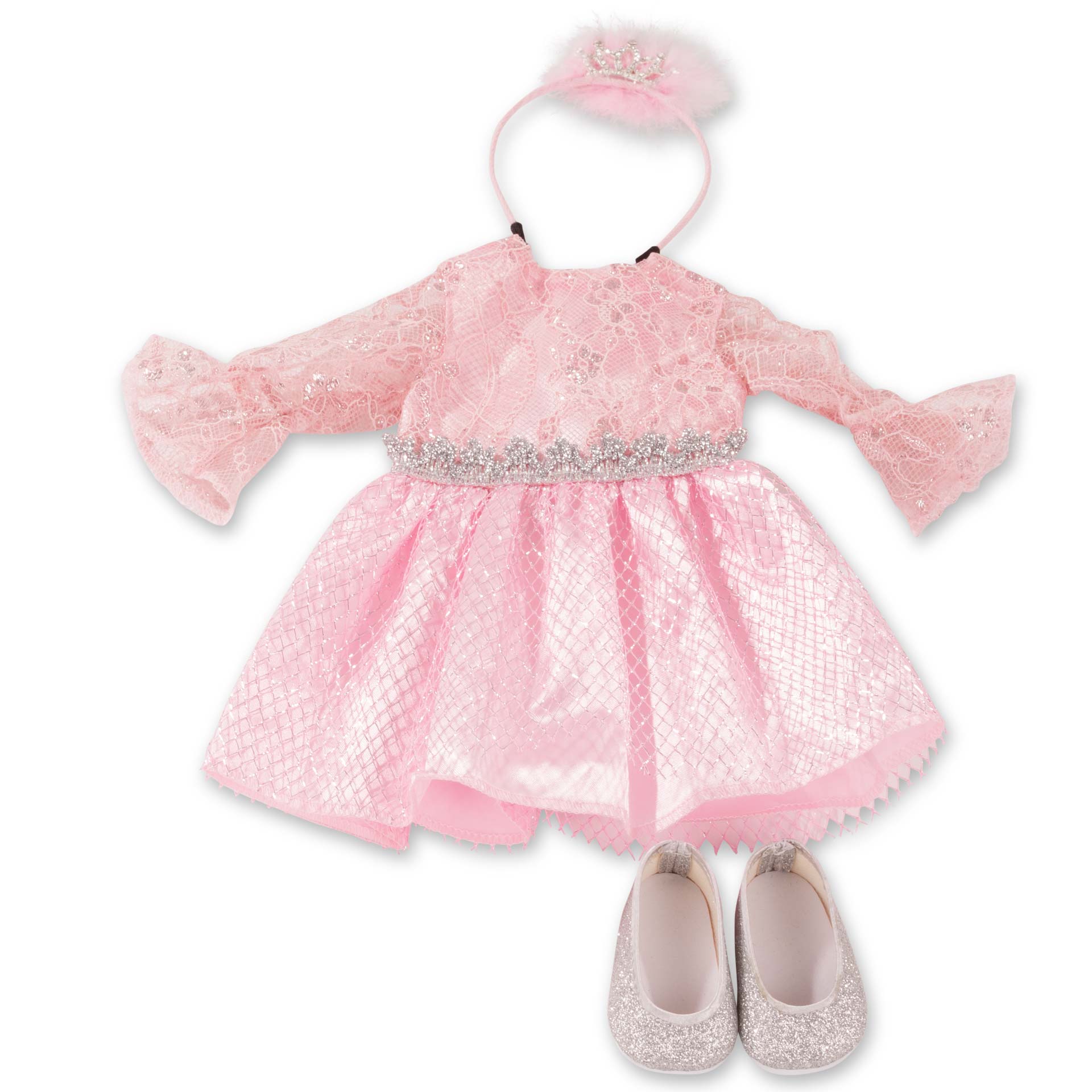 A princess needs glitter and glamour for her numerous invitations. This ensemble is just perfect for such occasions. A glittering chic dress with tulle on the skirt part combined with silver glitter flats and a tiara hair circlet, of course. Your doll will be the perfect princess.