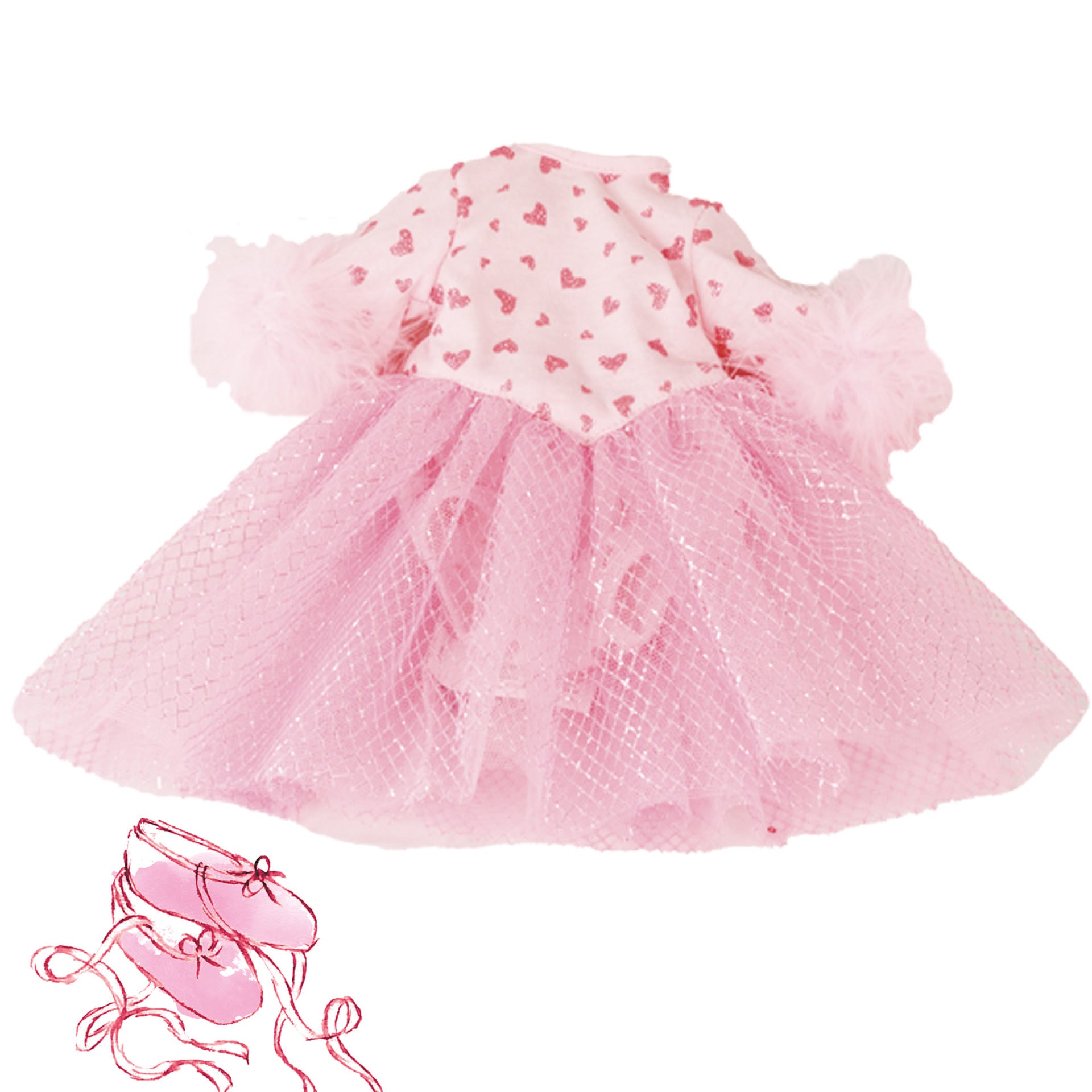 The tulle layers glitter and fine feathers on the sleeves fly when the little ballerina moves. Even the little hearts on the tummy have fine glitter and make this ballet outfit perfect for the next performance. Just wear it whenever you like and have fun!