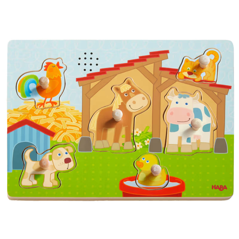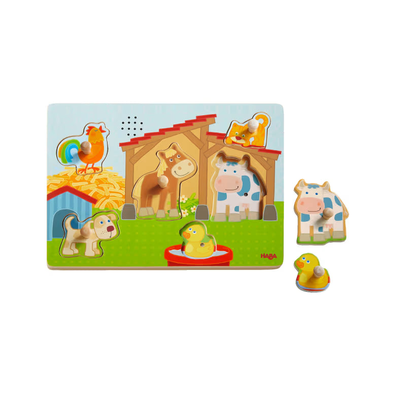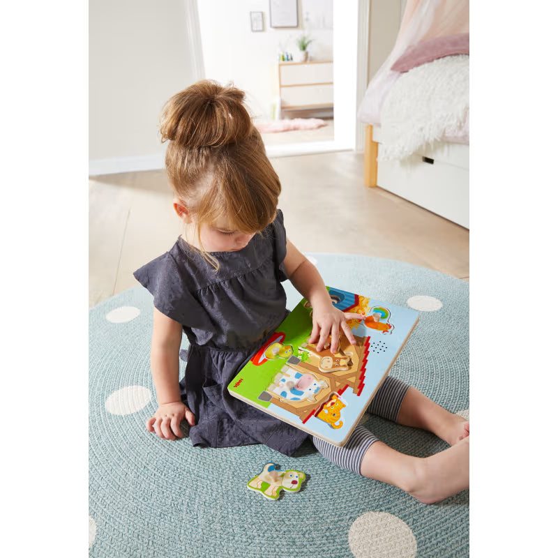 • HABA’s sound-activated puzzles make learning extra fun by letting children see and hear their success. When a wooden piece with an easy-grip knob is placed correctly, it plays a matching sound, keeping little ones engaged and delighted. Designed for toddlers aged 2+, these beautifully illustrated puzzles encourage fine motor skills, concentration, and patience while providing long-lasting, interactive play.