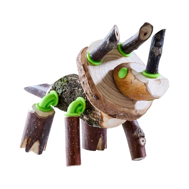 Create your own prehistoric creatures with the Terra Kids Dinosaur Construction Set from HABA! Using natural materials like sticks, leaves, feathers, and cork, children can drill, saw, and connect pieces to build movable dinosaur figures. The set includes a child-friendly hand drill, durable connectors, and instructions for making four dinosaurs, plus ideas for endless creative builds. A perfect hands-on activity that encourages creativity, imagination, and outdoor exploration.