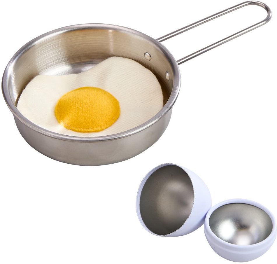This soft fabric fried egg adds delightful realism to play kitchens. It comes inside a metal egg that kids can “crack” open and cook, making pretend play even more engaging. Designed for creative role-play, it helps children build imagination, practice cooking skills, and develop fine motor coordination through hands-on fun.