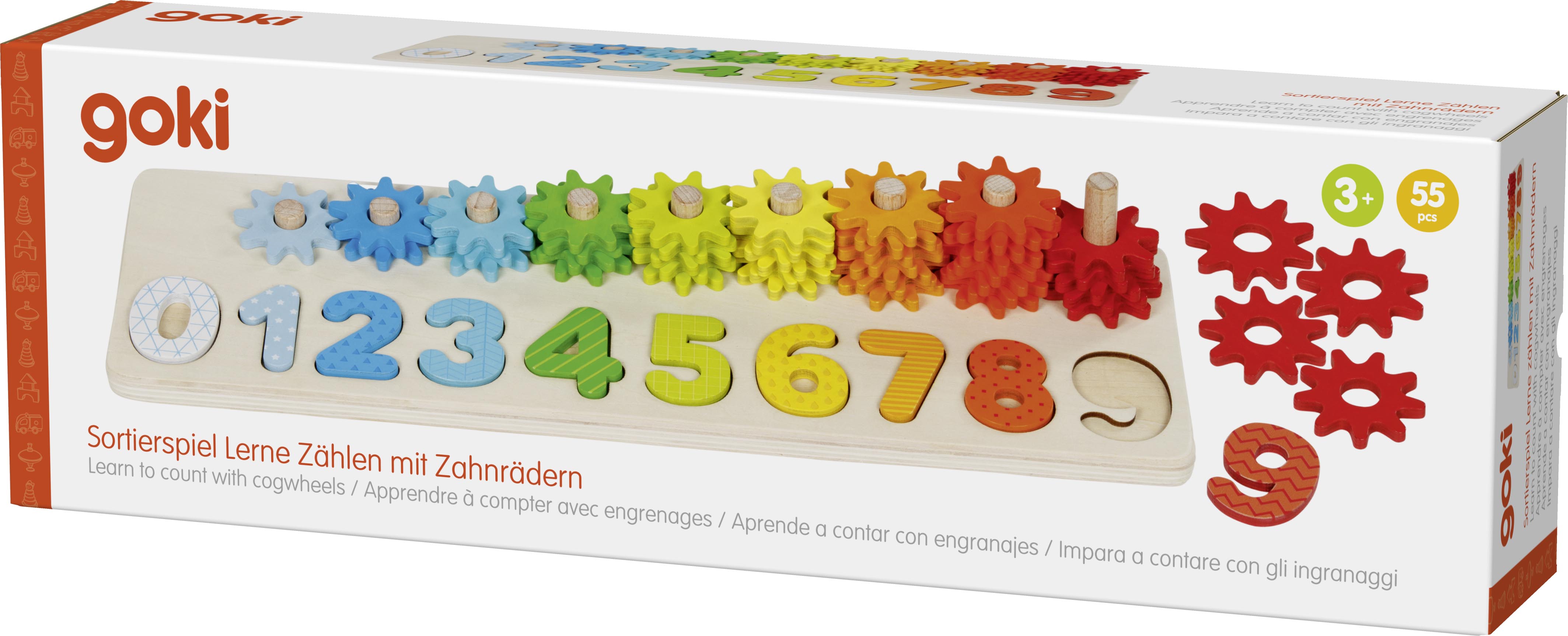 A vibrant and educational wooden puzzle designed to help young children develop early math skills through hands-on play. Featuring rainbow-colored cogwheels that correspond to numbers 0 through 10, this toy encourages children to match each gear to its correct number slot. As they engage with the puzzle, children enhance their understanding of numbers, colors, and counting, while also improving their fine motor skills and hand-eye coordination.