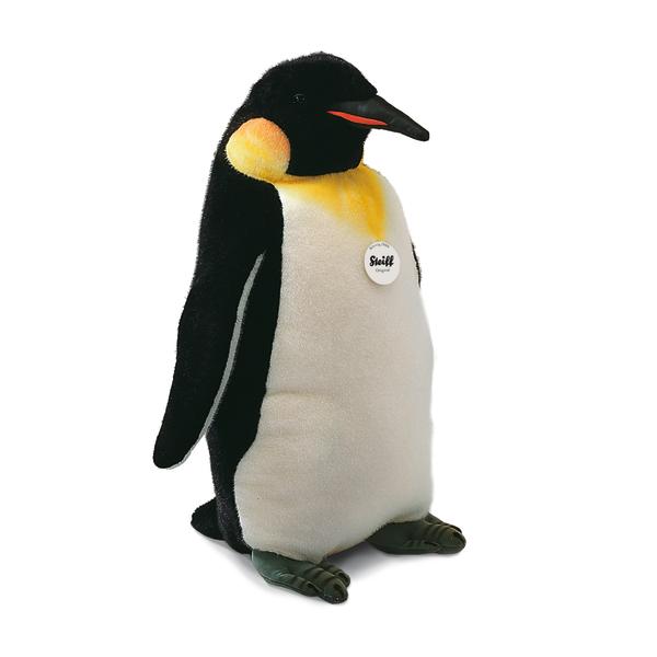 Introducing the Steiff Studio Emperor Penguin, a breathtakingly lifelike representation of one of nature’s most majestic birds. Crafted in Steiff’s prestigious Studio size, this impressive penguin features ultra-soft, premium plush in striking black, white, and golden-yellow tones, recreating the iconic markings of the Emperor species with remarkable realism. Its upright posture, detailed beak, and expressive eyes bring a sense of elegance and character, while the generously sized body makes it a stunning statement piece for home décor, displays, or collectors.