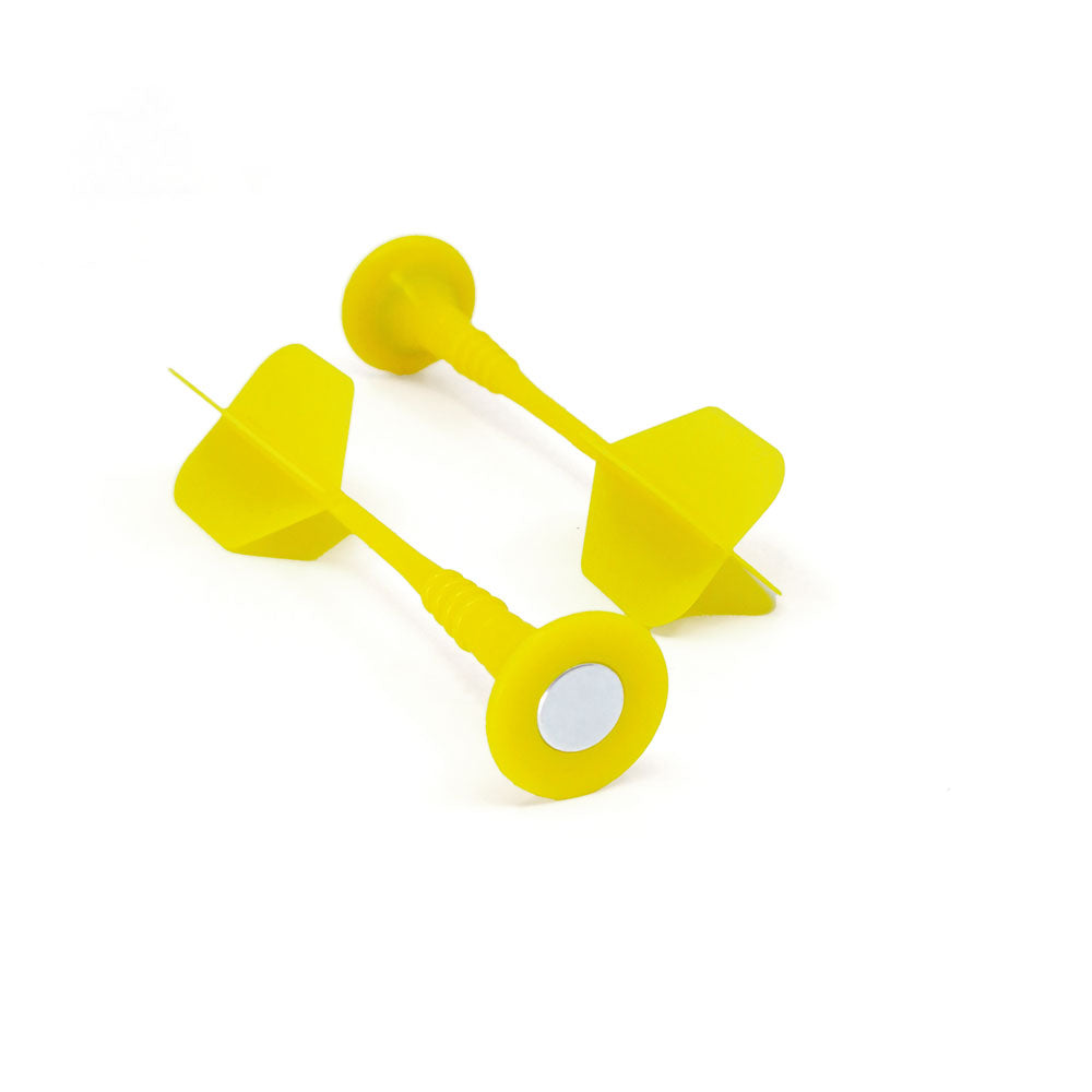 The cylindrical package includes a 2-sided dart board 40 * 32 cm that can be rolled up and easily stored, and 6 darts in 2 colors with magnets. The game is 2-sided so to provide 2 alternative game options with different levels of difficulty.