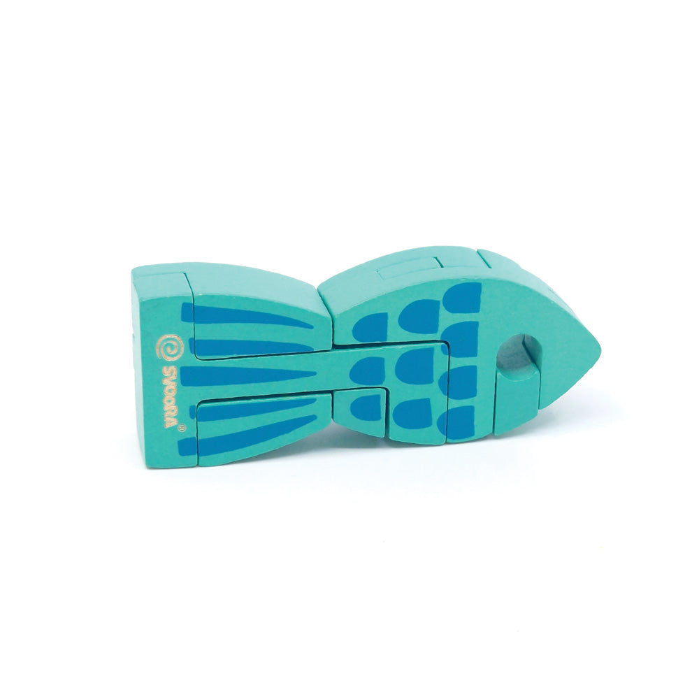 • This clever puzzle features four wooden pieces shaped like the letters “F-I-S-H,” which come together to form a stunning 3D fish.