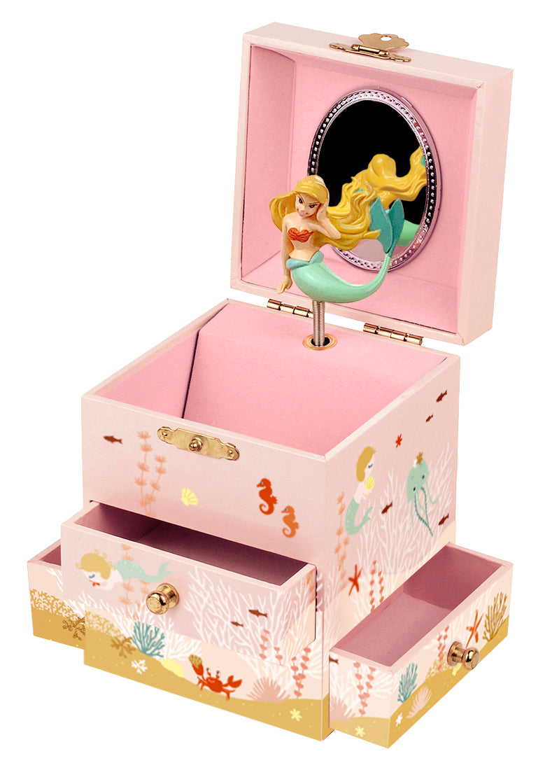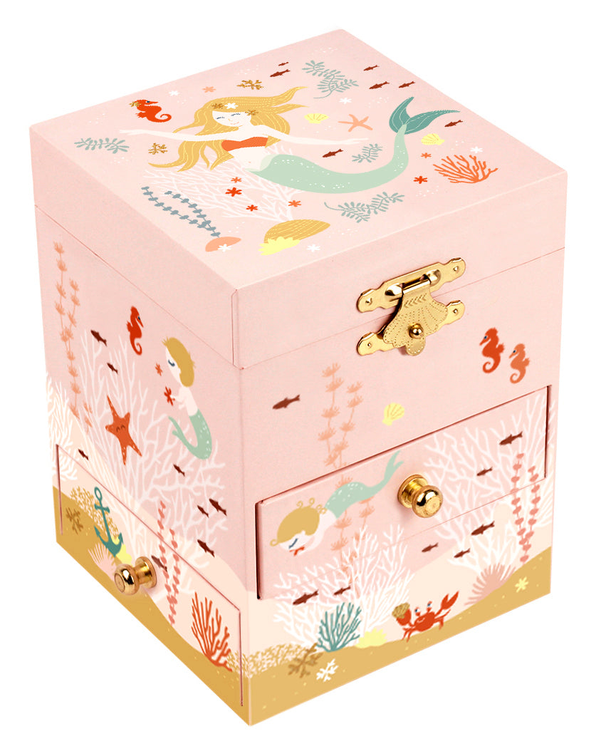 • Enchant your child’s room with the Mermaid Musical Jewelry Box from Trousselier. This elegant music box features a dancing mermaid figure that spins when the melody plays, offering a delightful combination of music, movement, and storage. Its design combines classic charm with whimsical underwater fantasy—perfect as a keepsake for children.