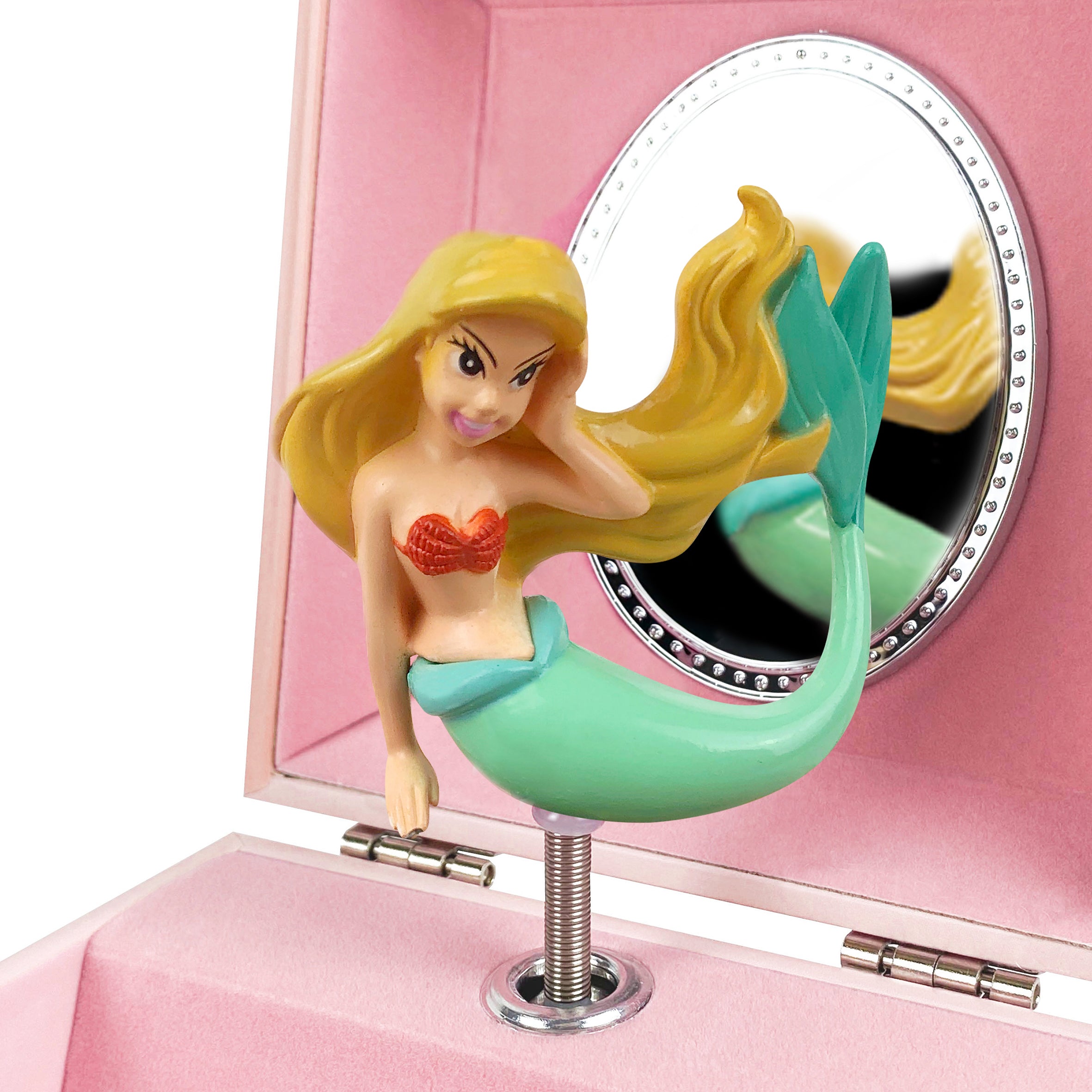 • The mermaid figurine spins when the box is wound, creating a charming visual effect.