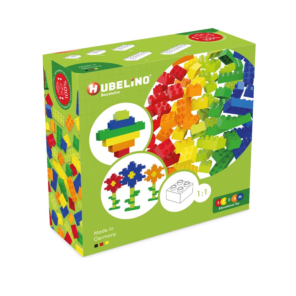 • The Hubelino 120-Piece Building Block Set offers children aged 1.5 years and up endless construction fun with 120 colorful blocks in various sizes and bright colors (red, blue, green, yellow, orange, light green). Made in Germany, the blocks are 100% compatible with popular building block systems, allowing for creative combinations with existing sets. Designed for imaginative play, the blocks encourage spatial awareness, fine motor skills, and STEAM-based learning. The set meets high-quality standards and provides a durable, safe, and versatile foundation for building a wide range of structures.