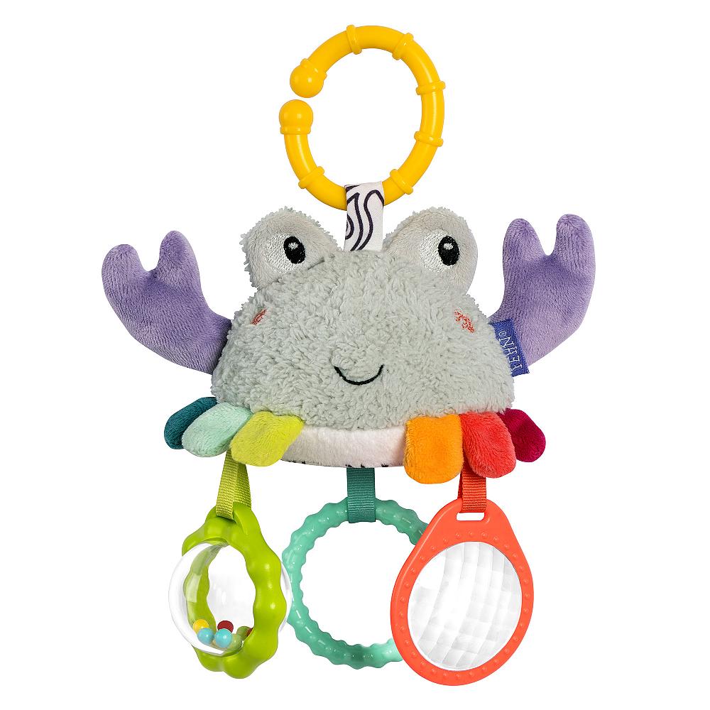 - PLAY AND DISCOVER - The crab with rattle ring, mirror, teether, bell, and grasp ring sparks curiosity and optimally promotes self-awareness