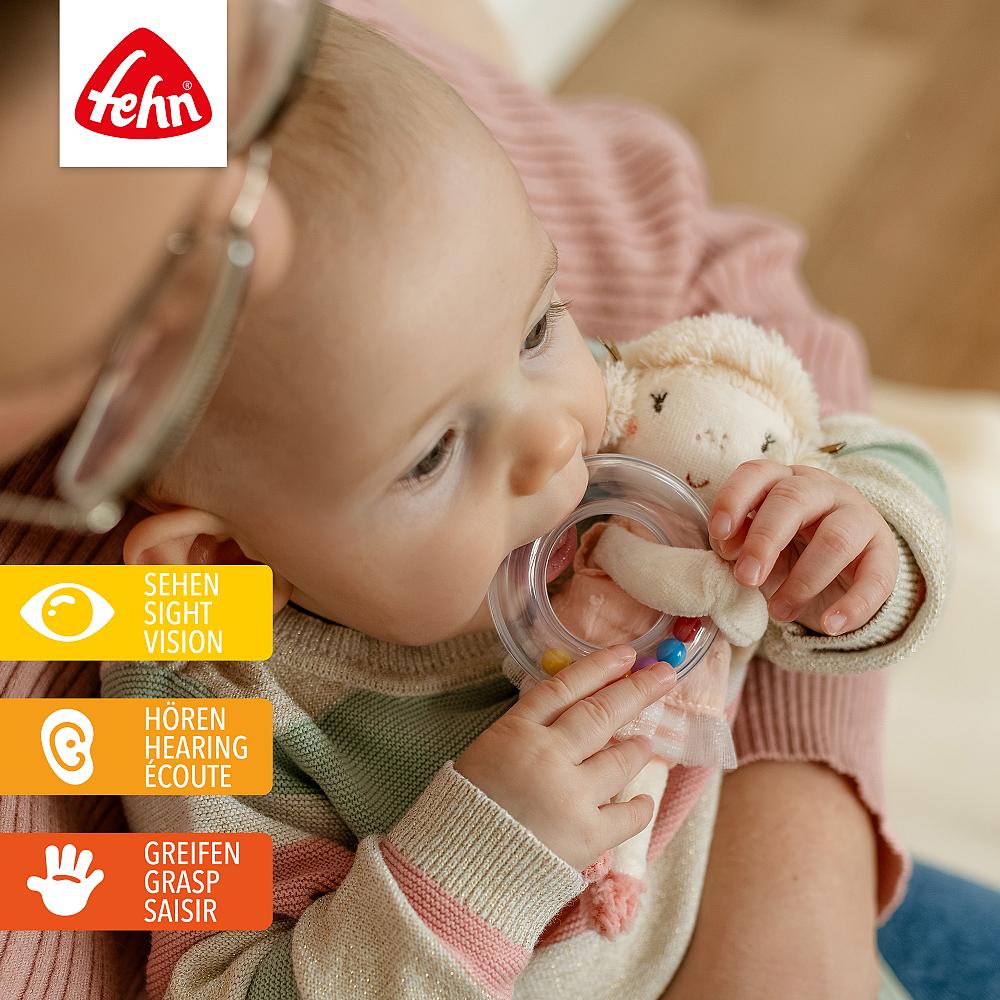 - PROMOTES MOTOR SKILLS - The grasping toy playfully promotes your baby's sense of hearing, grasping, and touch, as well as fine motor skills, making it the ideal gift for a birth, baptism, or birthday.